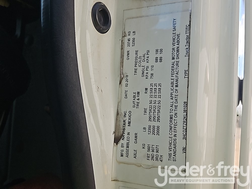 2019 International LT625 Tandem Axle Truck Tractor, Day Cab (Meter Reading: 543733 Miles) - 3HCDZTZR2KL381028