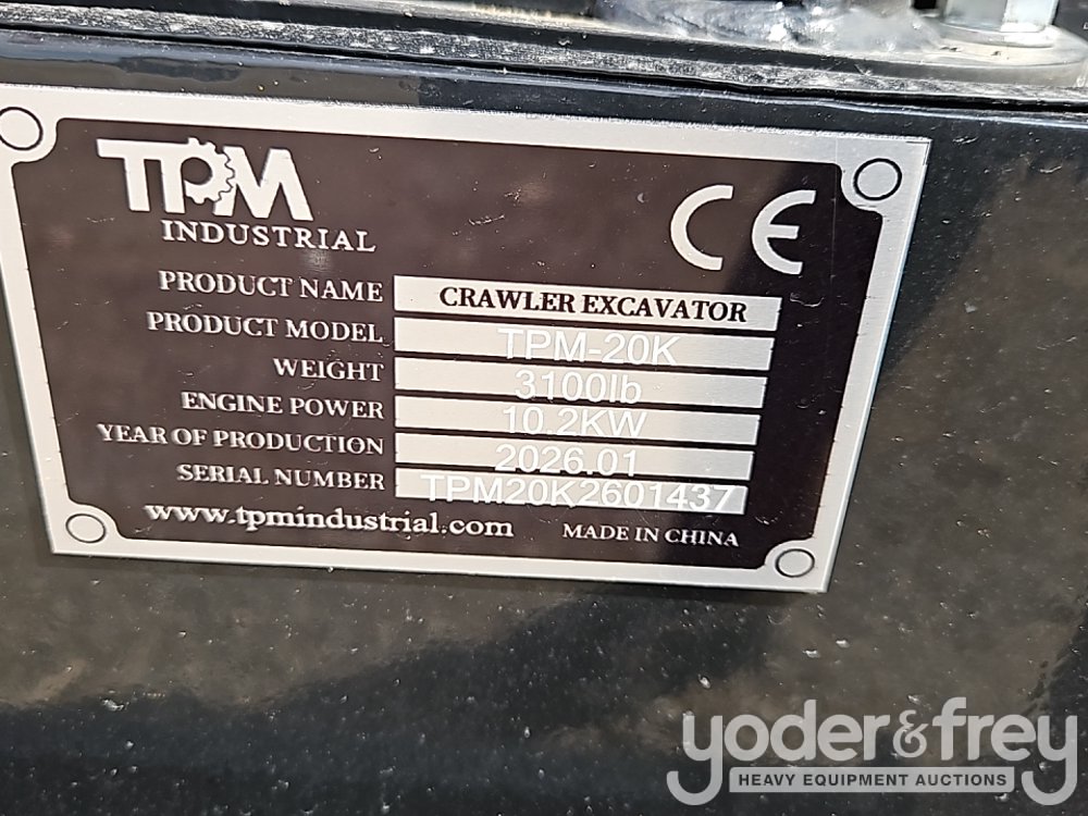 Unused 2026 TPM TPM-20K Excavator, OROPS, Rubber Tracks, Blade, Aux Hydraulics, 15" Bucket, Hydraulic Thumb - TPM20K2601437