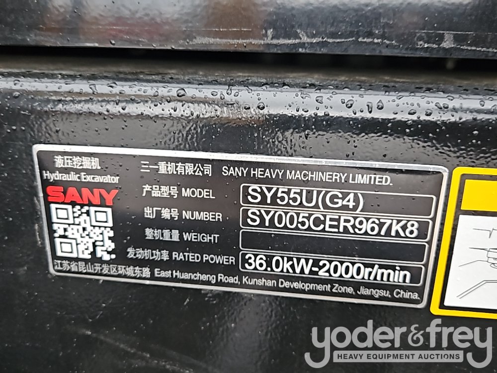 Unused 2025 Sany SY55U Excavator, Cab, A/C, 16" Pads, Blade, Aux Hydraulics, QC - SY005CER967K8